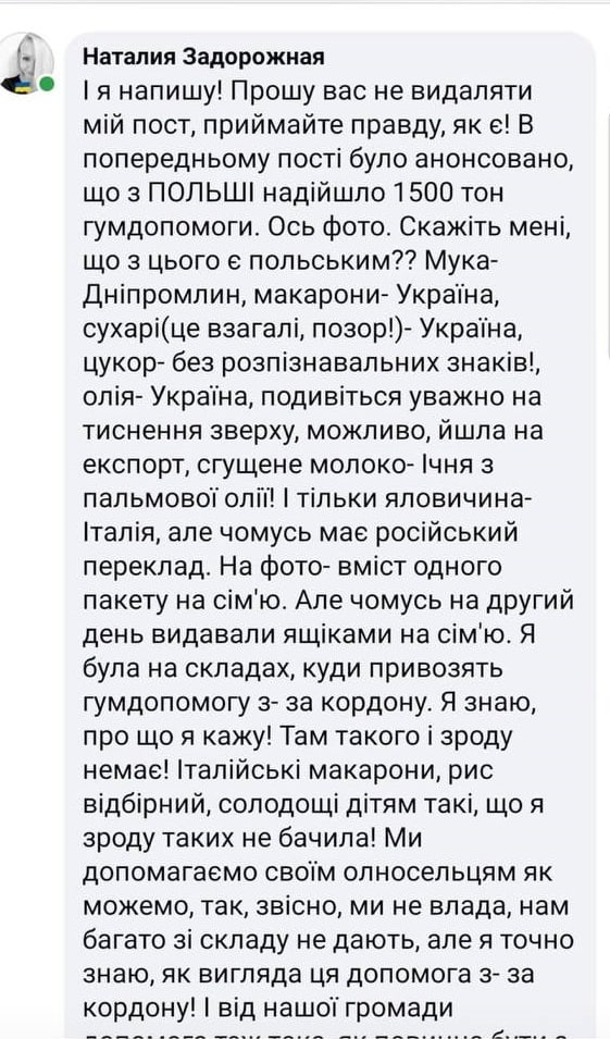 Так, в соцмережах почали з’являтися свідчення того, що гуманітарну допомогу, яка приходить до Запорізької області крадуть.